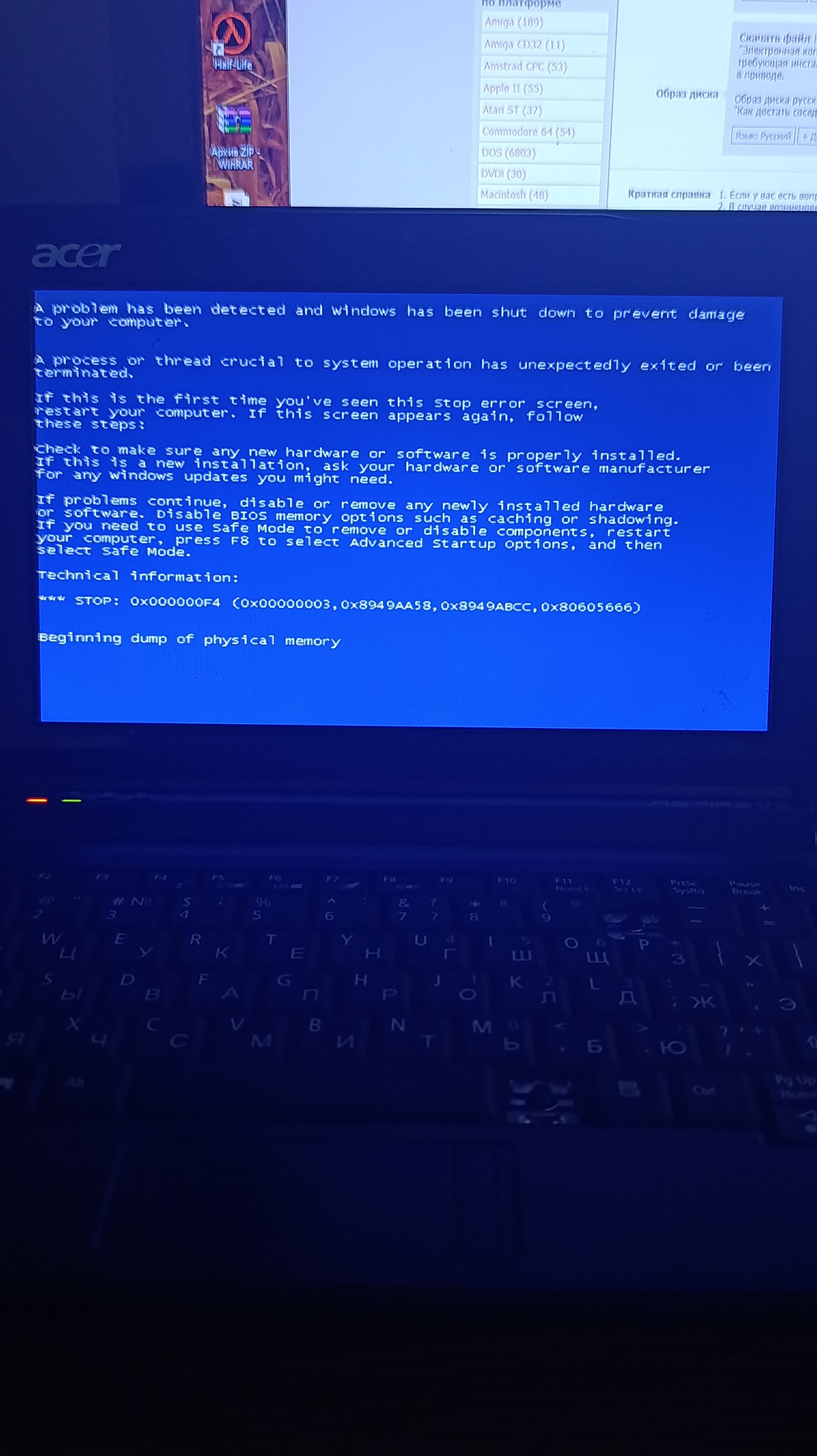 7 декабря 2025, 14:44 При запуске Half Life1 Year Edition синий экран смерти Картинки Я столкнулся с проблемой при запуске халф лайф То есть я чуть-чуть могу поиграть но потом начинаются фризы на пару секунд а иногда до синего экрана смерти что это и как это можно исправить Обновлять Винду? Unknown @Oldos Unknown 4 комментария по лайкам по дате Оставьте комментарий... Oldos 12 часовАвтор Так главное что все остальные игры в том числе 3д идеально работают Вот допустим Resident Evil 2 вообще без фризов я хз что мне делать Internet_serfer 11 часовЛётчик на Элитрах Поставь 8 у неё оптимизация хорошая Limows 8 часовКонсольщик Там полтора гига ОЗУ и атом. Не нужна там восьмерка. Limows 8 часовКонсольщик Возможно с ОЗУ проблемы. Но попробуй скачать другой дистрибутив самой игры.