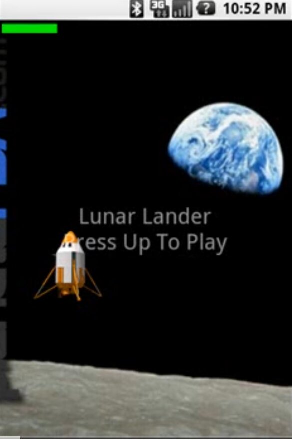 Lunar Lander это аркадная игра, где игрок должен правильно приземлить свой лунный модуль на зеленую посадочную площадку, расположенную на поверхности Луны. Гравитационное поле Луны тянет модуль вниз. Используйте двигатель, чтобы противостоять жесткой посадке, но помните, что лунный модуль имеет ограниченное количество топлива.