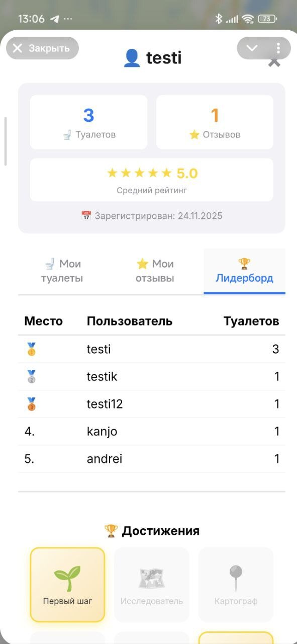 Сервис в активной разработке, новые точки добавляются каждый день. Присоединяйтесь к сообществу тех, кто верит, что искать туалет в городе должно быть легко!