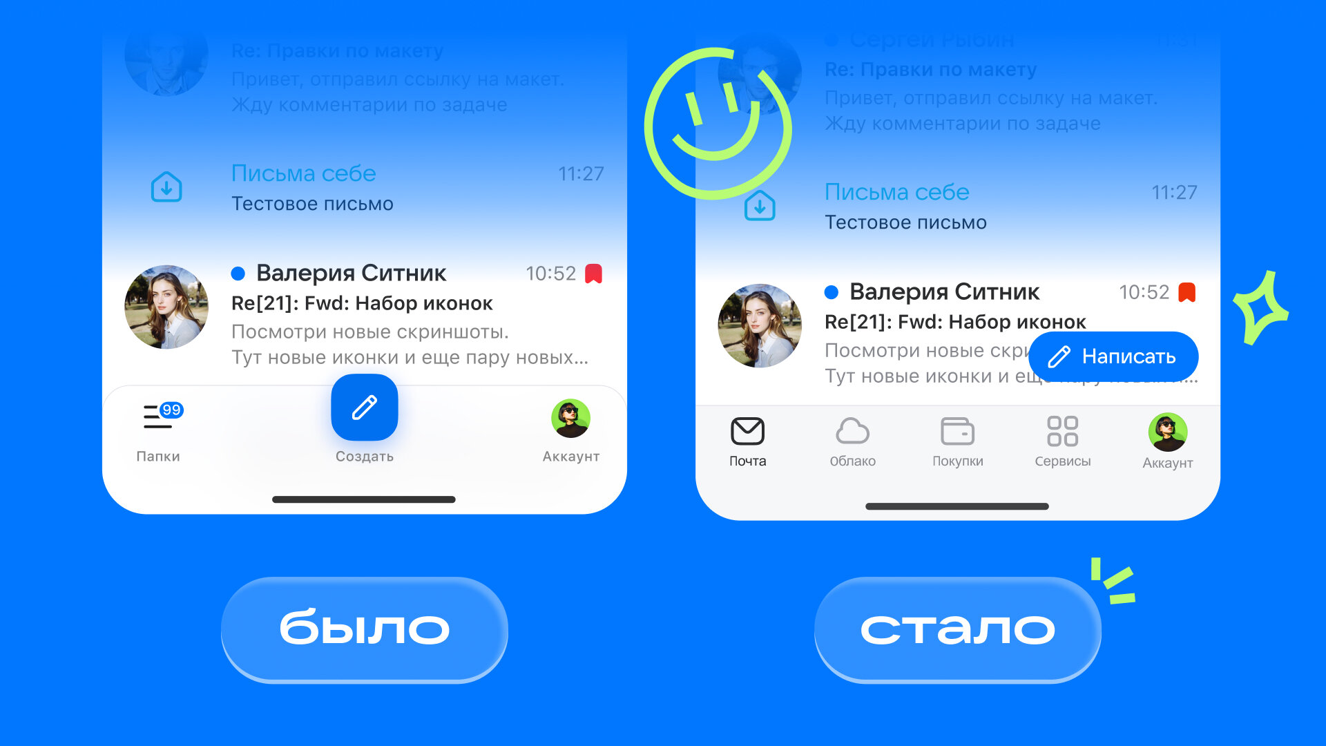 «Мы внимательно прислушиваемся к мнению пользователей и регулярно проверяем наши решения в исследованиях. По их результатам обновлённую навигацию большинство оценило как более удобную и привлекательную. Пользователи отметили, что она помогает быстрее решать задачи в приложении. Именно такие отзывы помогают нам делать сервисы проще, понятнее и удобнее для повседневного использования», — комментирует директор по продукту Mail Сергей Прокудин.