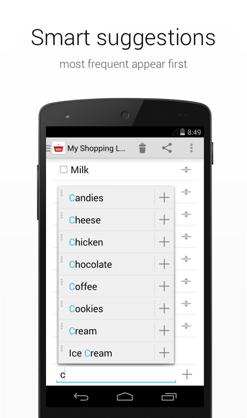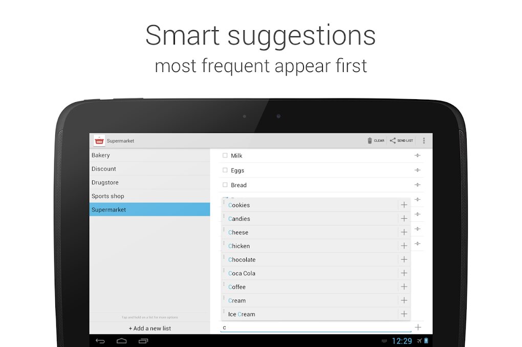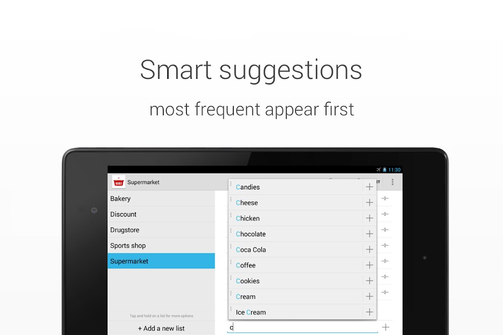 Когда вы начинаете вводить названия продуктов, «Список покупок» показывает вам рекомендации, чтобы вы могли быстро добавить продукты в ваш список покупок. Приложение имеет множество популярных рекомендаций для начала. Все продукты, введенные вами в корзину для покупок, позже будут доступны в качестве рекомендаций, чтобы вы могли сэкономить время при подготовке списка покупок. Можно добавить несколько списков покупок для продуктов из разных магазинов.