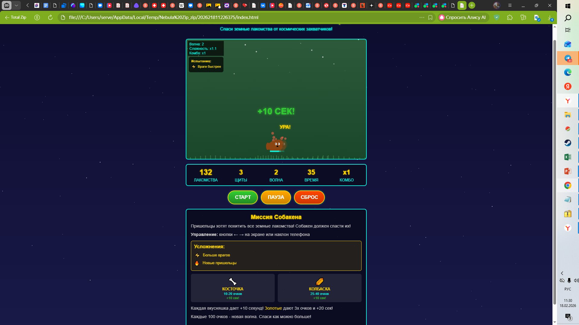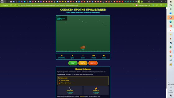 всем привет это моя новая игра песель против пришельцев в игре ты играешь за пса боба ты должен ловить вкусняшки чтобы добавлять себе время ведь оно ограничено избегай пришельцев