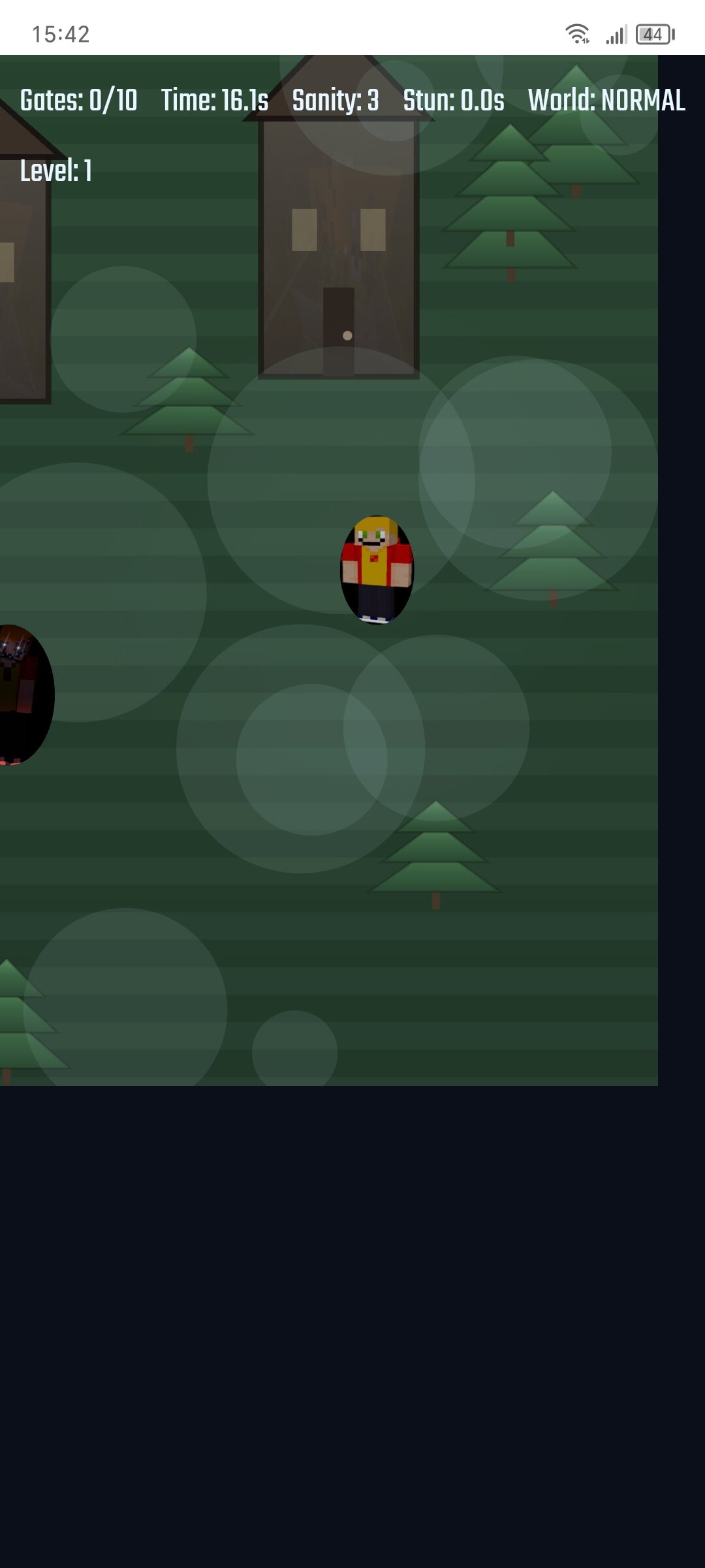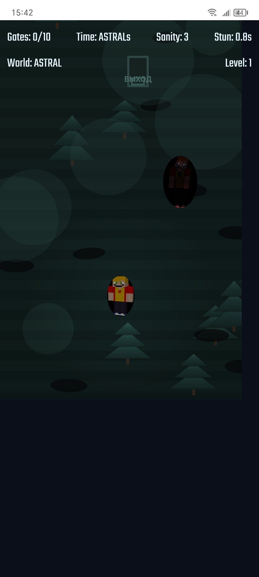 Вы должны сбежать от страшных монстров в 10 выходов, есть порталы, есть яблоки