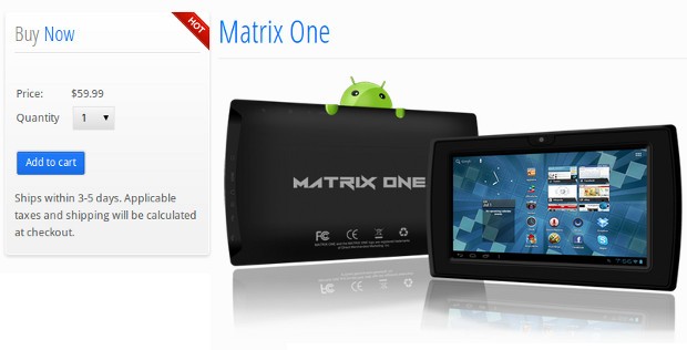 Похоже, что планшет на Android Matrix One, цена на который была недавно снижена до 90$, не набрал нужную популярность. В связи с этим, падение цен продолжается. Теперь его можно заказать всего за 60$.