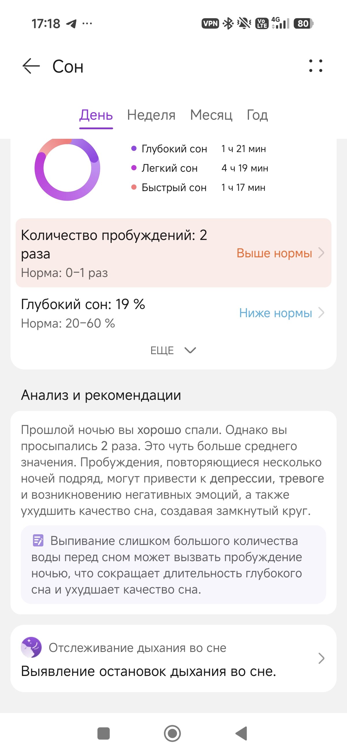 Понравилась и система трекинга качества сна — суть в том, что часы отслеживают не только глубокие фазы сна и прочие базовые параметры, но и изучают дыхание человека.
