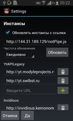 Рабочий клиент YouTube для Android 1.5+, использующий API YtAPILegacy, Invidious и yt2009 c расчётом на долговечность. Вместо того, чтобы подключаться к одному определённому инстансу, приложение использует множество инстансов для надёжности.