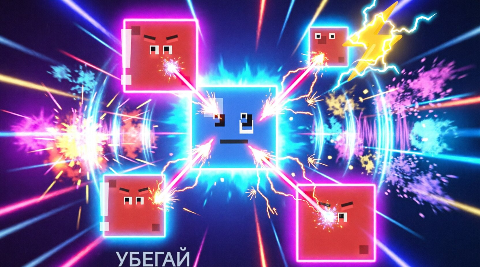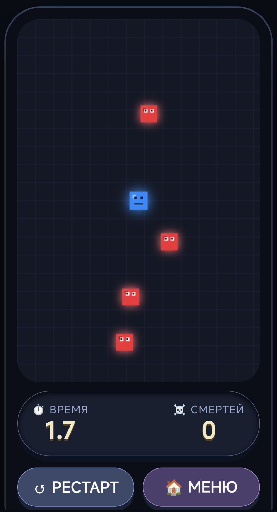 Просто тыкать или управлять синим квадратом а на красных лучше не попадаться…