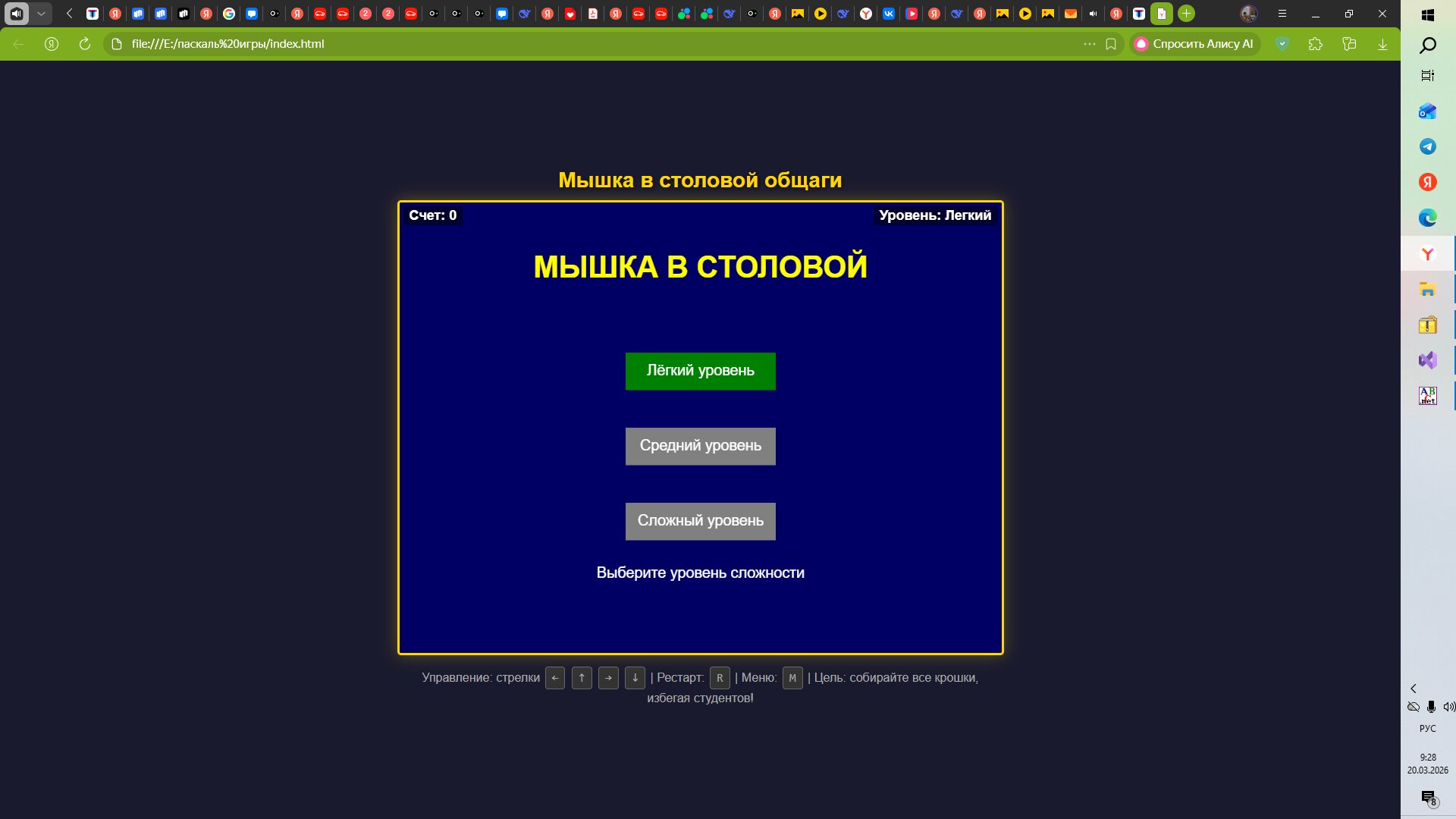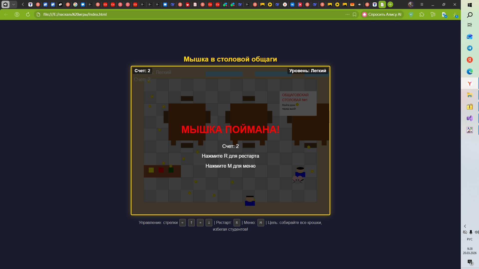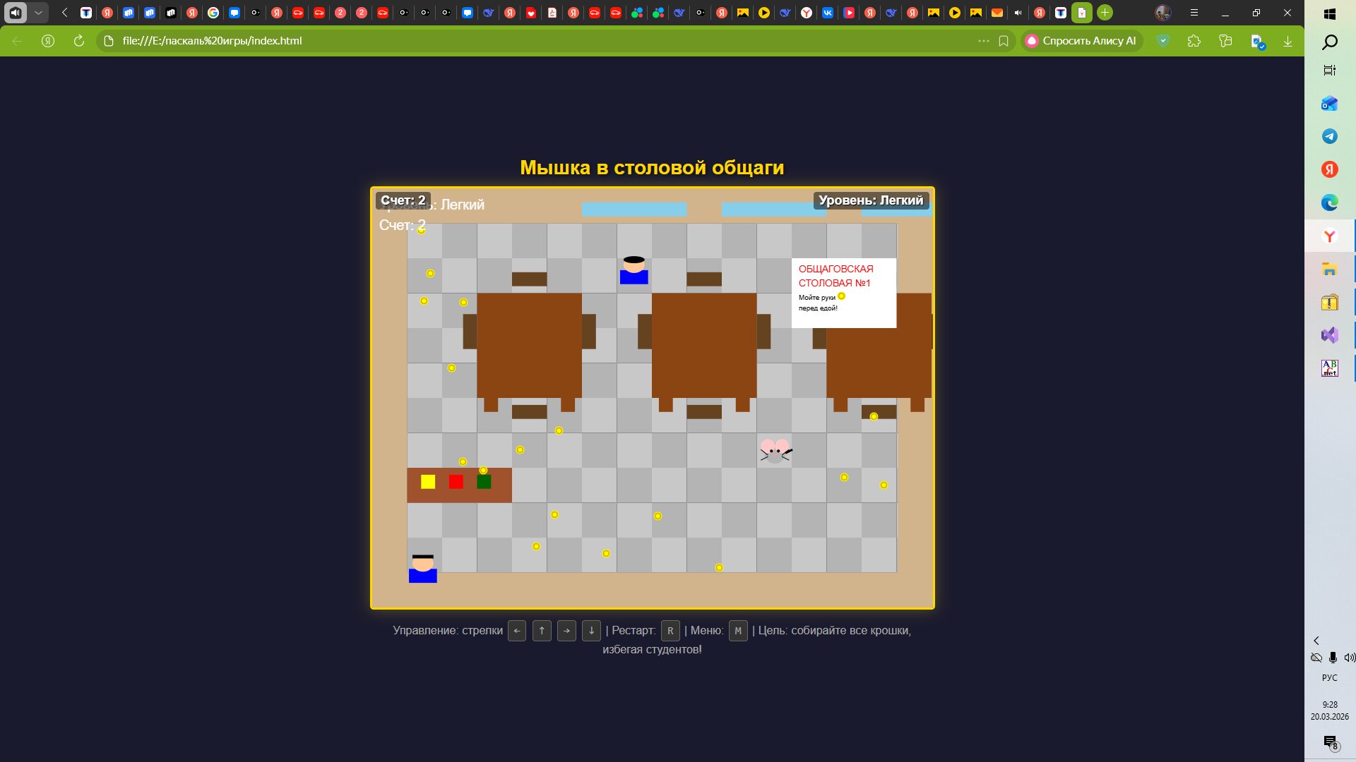 всем привет мышка в столовке моя новая аркада написанная на языке программирования паскаль игра очень простенькая зайдет не всем и так цель игры собрать все крошки за мышку и не дать себя поймать студентам