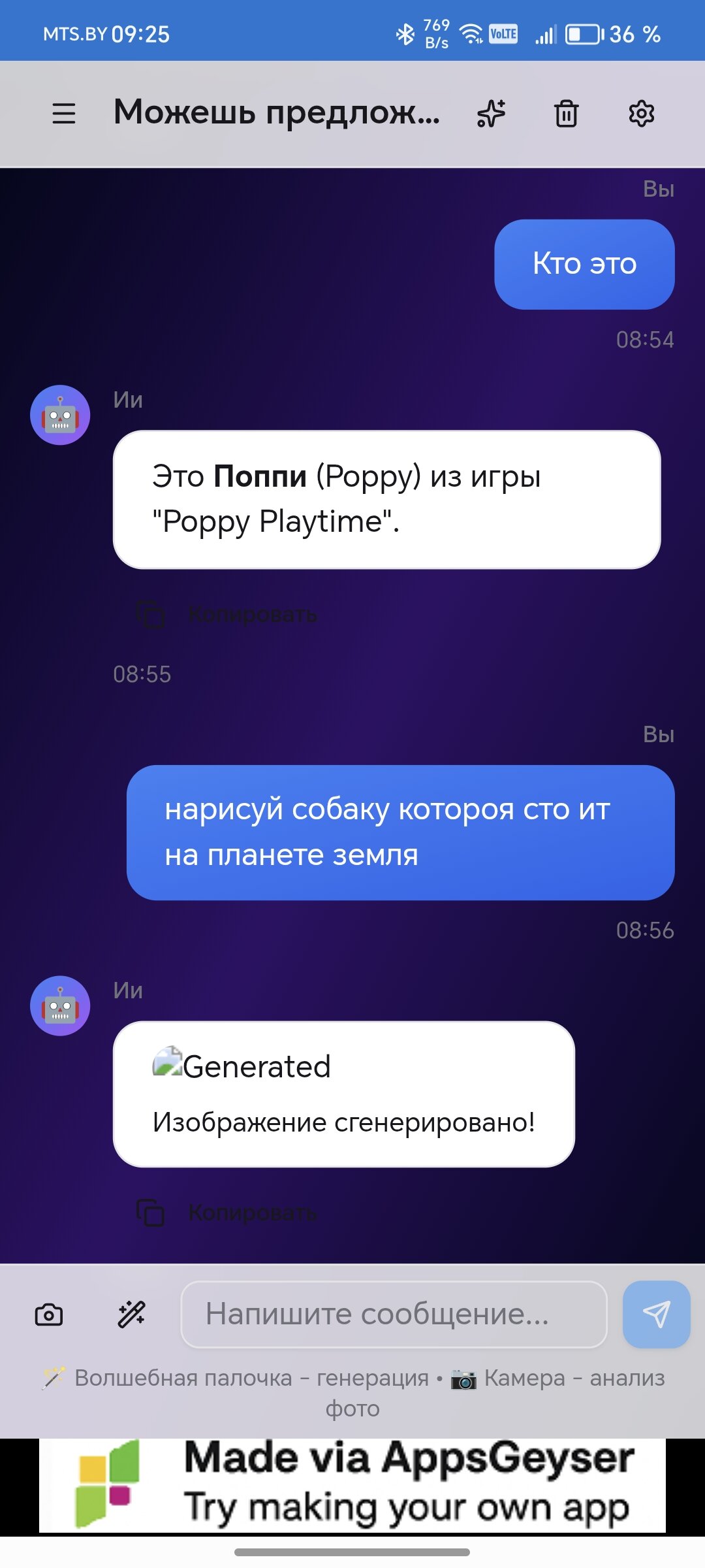 Это ии приложение для телефона на андроид. Это ии работает на Google сервере. Моё ии работает без ошибок, умеет отвечать на вопросы, решать, слушать, анализировать фото и отвечать на вопросы и даже генерировать фото.