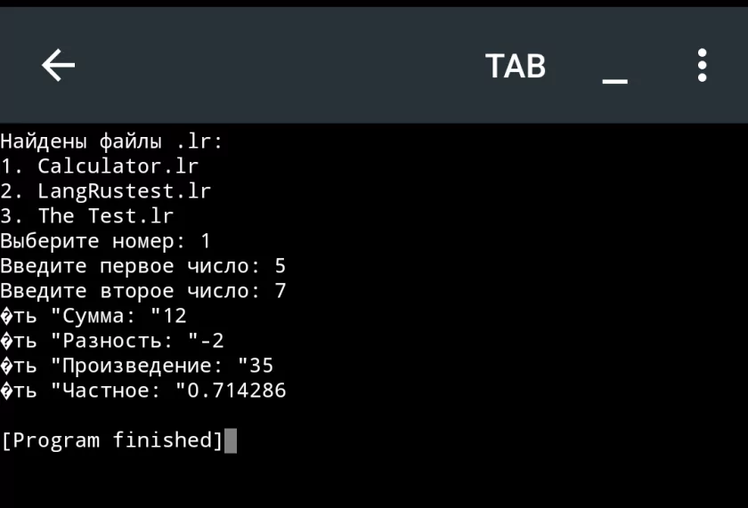 Всем привет! (Может мне хватит это писать?). Я обновил наш Язык! Это уже третья альфа. И в ней как вы поняли по подзаголовку я добавил базовые математические операции. Конкретнее это деление, умножение, сложение (фикс), и вычитание. Вот как сделать калькулятор (будут проводится сразу все действия) "начало