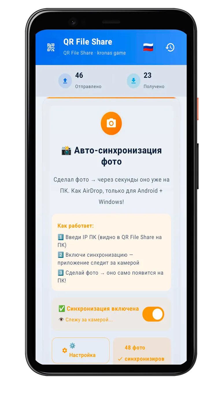 QR File Share — быстрая передача файлов ПК-Телефон через QR-код