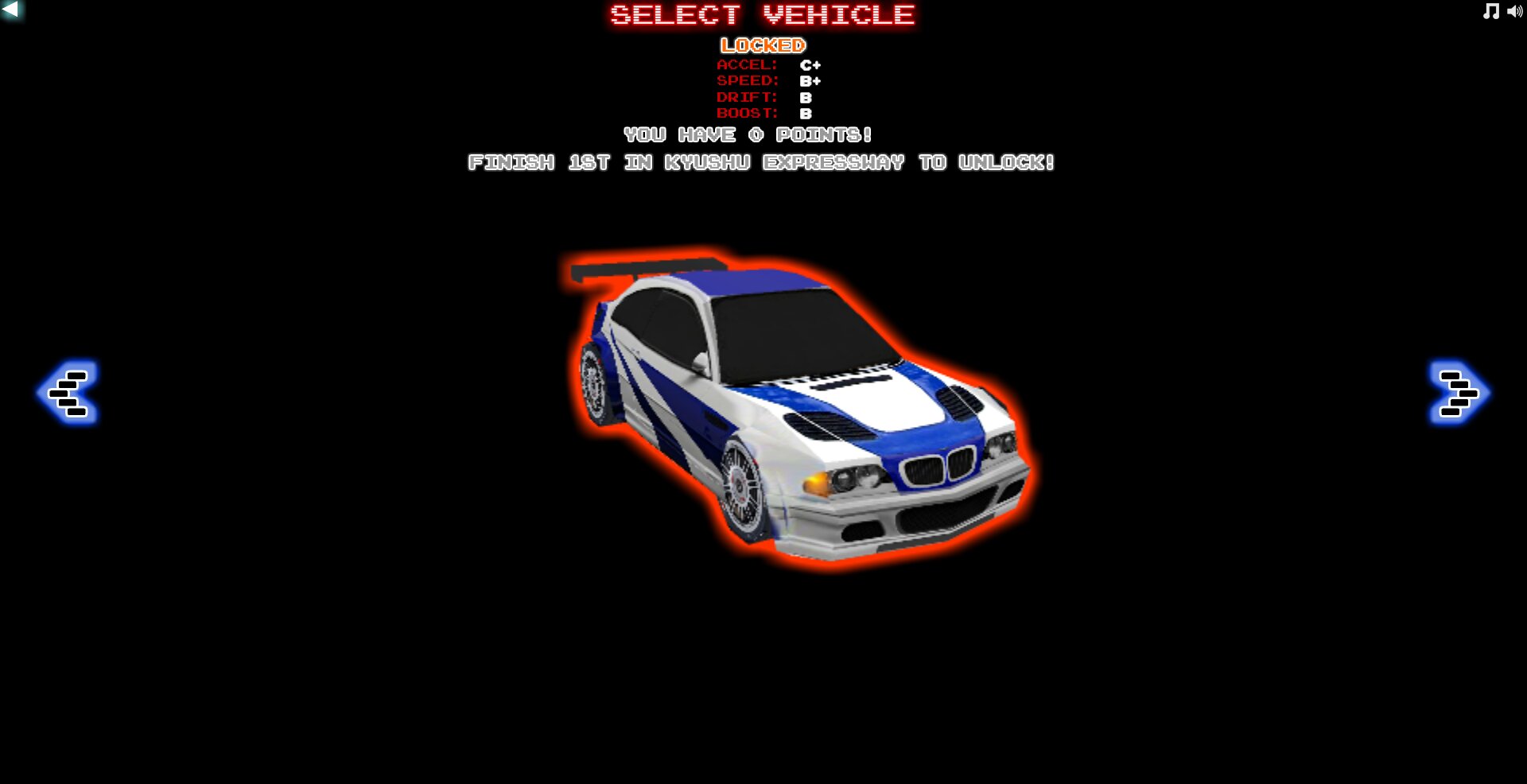 В демке шесть машин: Ford Focus RS (стартовая), Lexus SC300, Volkswagen Scirocco, Mazda Eunos Cosmo, Mitsubishi Eclipse и легендарная BMW M3 GTR. И тут в игру вступает система прогрессии. В оригинале почти все машины были доступны с самого начала (кроме босс-тачки), а здесь нужно копить очки, как в нормальной игре. Чтобы открыть M3 GTR, нужно занять первое место на трассе Kyushu Expressway. Это уже не просто «зашёл-погонял», а реальная мотивация.