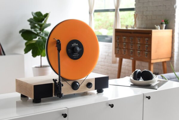 Главной изюминкой, если так можно сказать, экспозиции стал виниловый проигрыватель с подсвечиваемой поверхностью. Это беспроводная модель Trettitre TTT-LP3 со встроенной аккумуляторной батареей, которую можно как в горизонтальном, так и вертикальном положении. Звук посредством связи Bluetooth 5.3 передаётся на наушники или колонки. Заявлена поддержка Qualcomm aptX HD. При желании можно использовать проводное подключение, для чего предусмотрен стандартный аудиовыход 3,5 мм. Настенное крепление заряжает проигрыватель, а встроенный аккумулятор обеспечивает до шести часов воспроизведения.