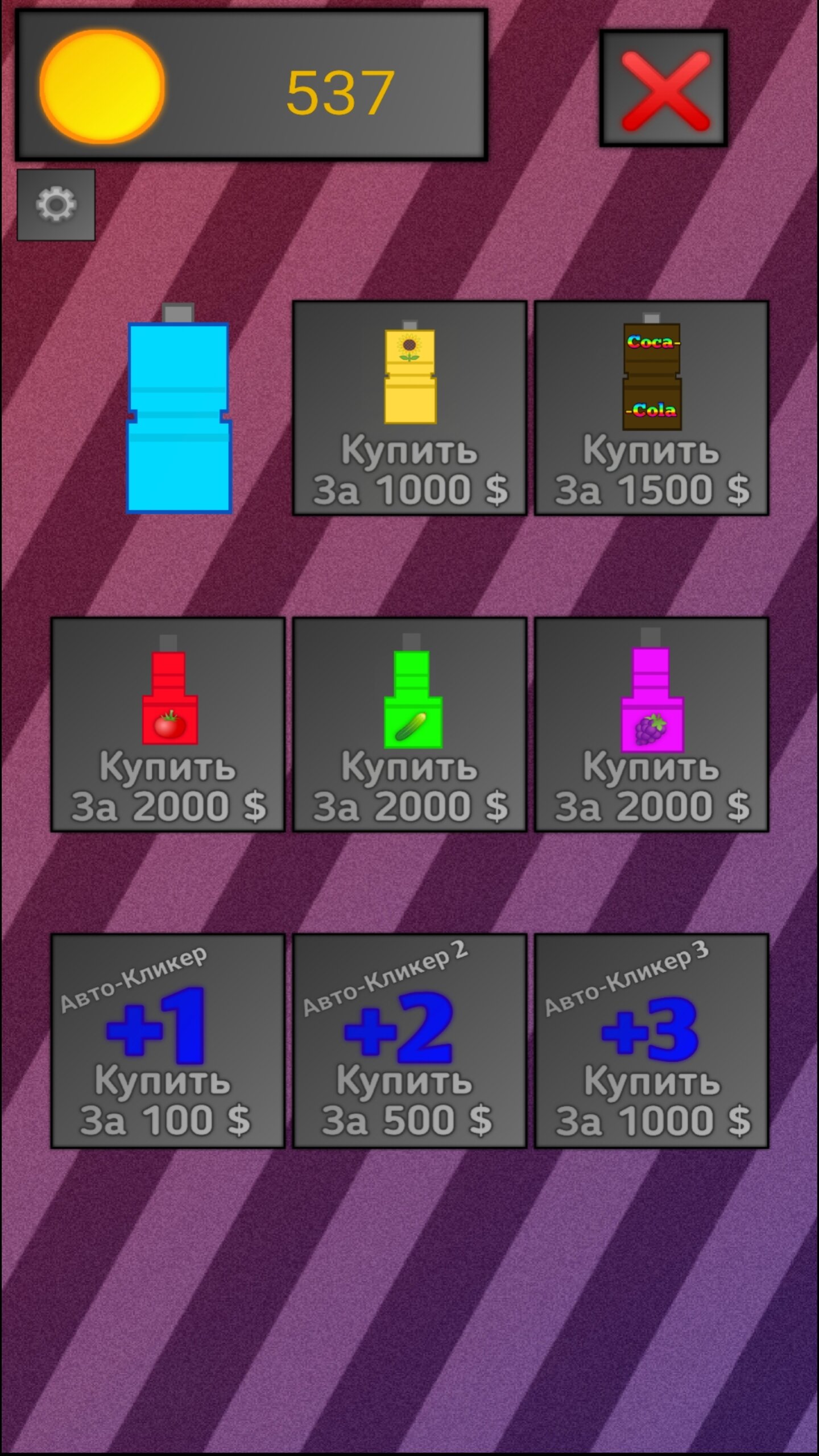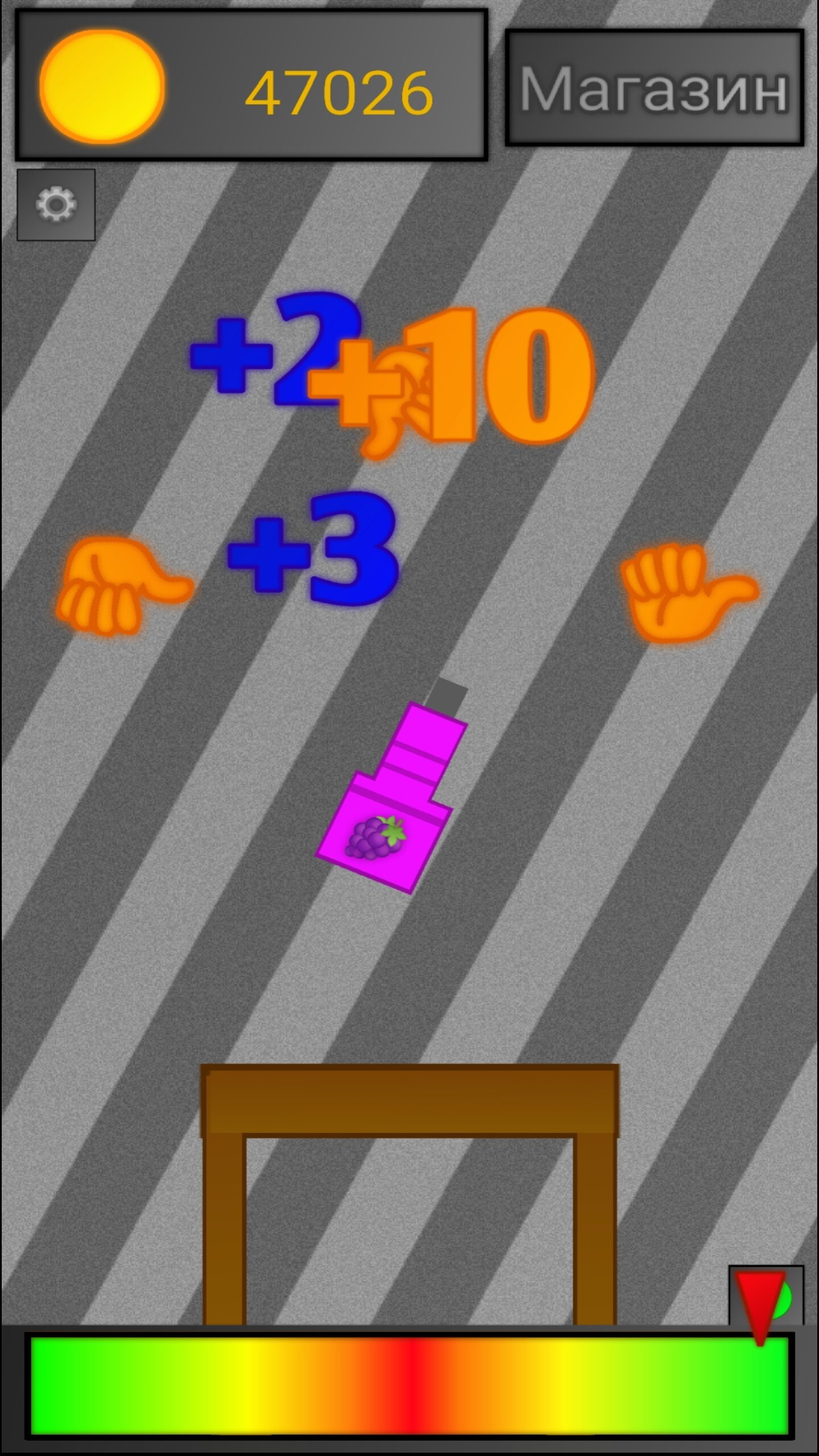 Подбрось бутылку — Это старая и первая игра от студии в которой были добавлены сохранения! В этой игре вам предстоит подбрасывать бутылку и получать за это монеты, за монеты вы сможете покупать новые бутылки и покупать авто-кликеры!