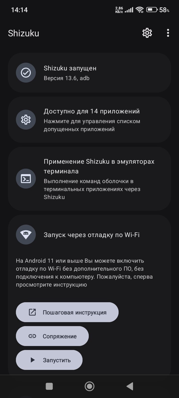 - Автозапуск: теперь исправно работает функция «Запуск при загрузке», позволяет при перезапуске устройствы, автоматически запускать Shizuku при подключении к WiFi сети и при этом даже не нужно ничего запускать и соглашаться для автоматического запуска Shizuku.