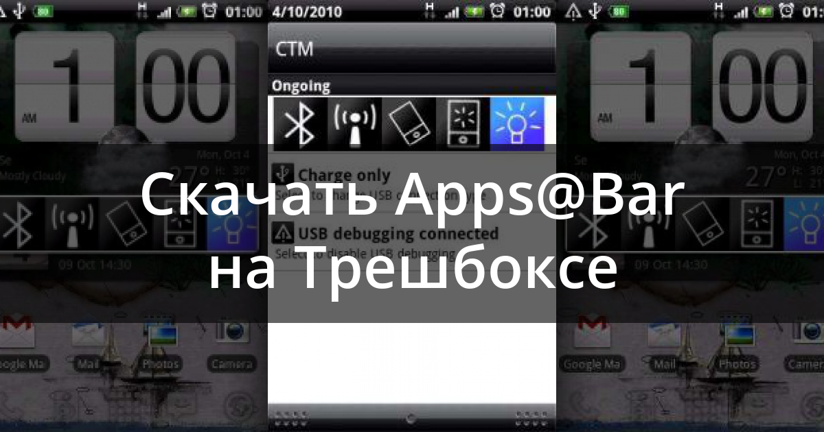 Это приложение сможет увеличить функционал статус-бара в вверху экрана. В области уведомлений появляются иконки Bluetooth, Wifi, управление экраном и звуком.