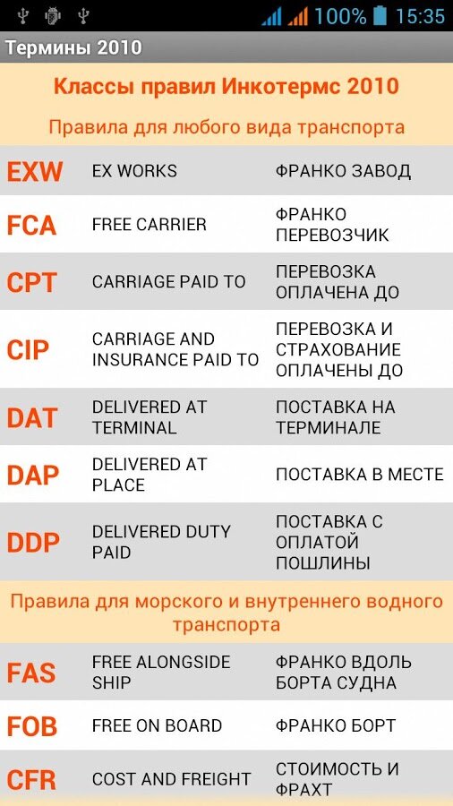 Справочником удобно пользоваться для выбора нужного правила при подготовке коммерческих контрактов, когда надо сориентироваться — какие обязательства, риски и платежи возлагаются на продавца и покупателя при различных условиях поставки товара.