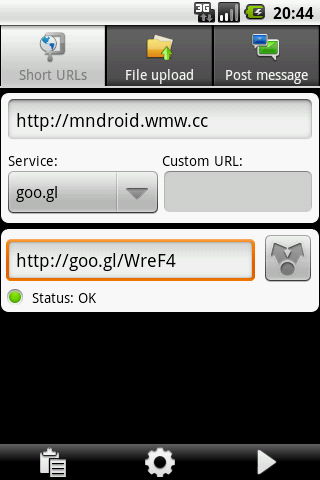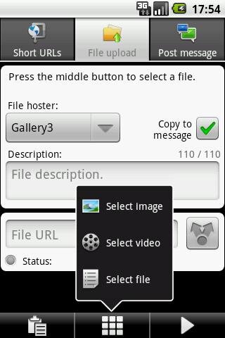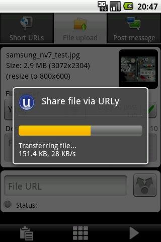 С URLy можно сократить длинный URL-адрес (с bit.ly, goo.gl, TinyURL, и еще 30), загружать (Yfrog, ImageShack, FileSocial, Imgur и другие). Размер файла и текущей скорости загрузки отображается во время загрузки файлов.