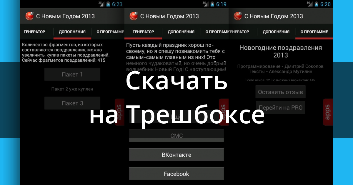 Генерация Новогодних поздравлений, отправка СМС или публикация в ВКонтакте.
