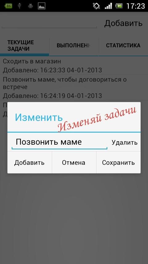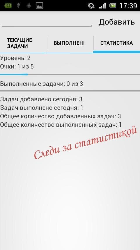 Ведение списка дел, просмотр статистки выполнения заданий.