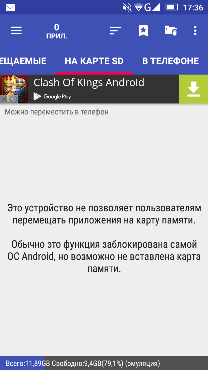 Ах, да, я через Sd app заходил он пишет:«В устройстве нет внешнего хранилища данныхили внешнее хранилище данных эмулировано»