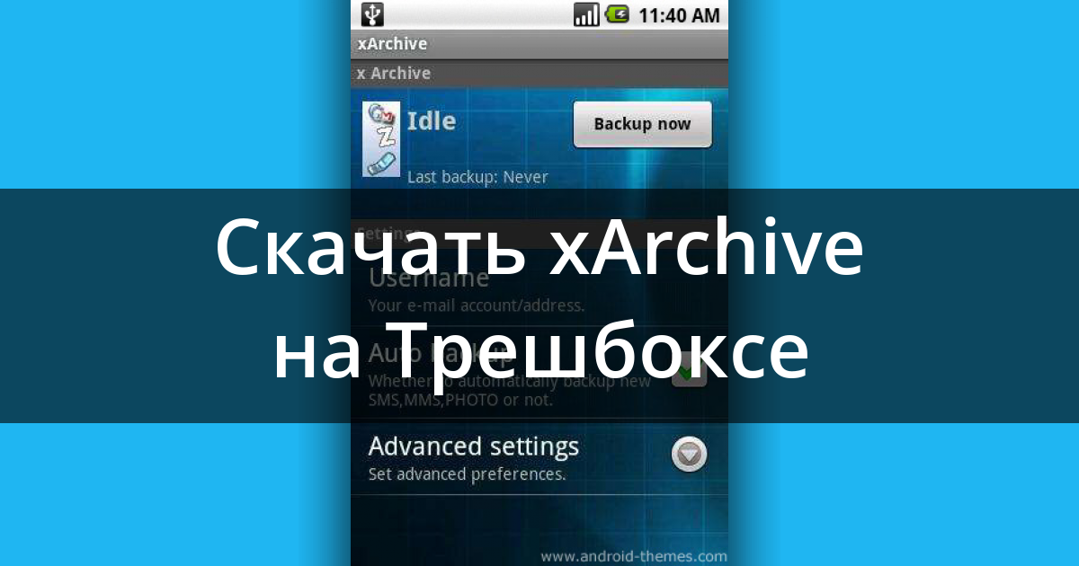 xArchive 2.9.5 Приложения / Android / Утилиты Скачать на Трешбоксе Android 1.5+ Программа позволяет сделать бэкап свои данных и отправить его на Gmail.Обновлено: 13 апреля 2013, 14:50. Dimaska Пользователь Комментариев пока нет Оставьте комментарий...