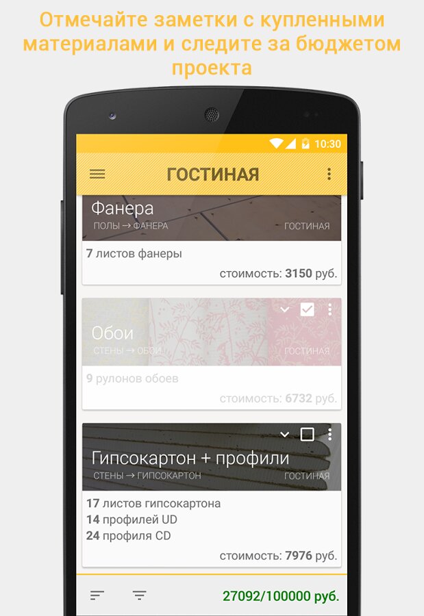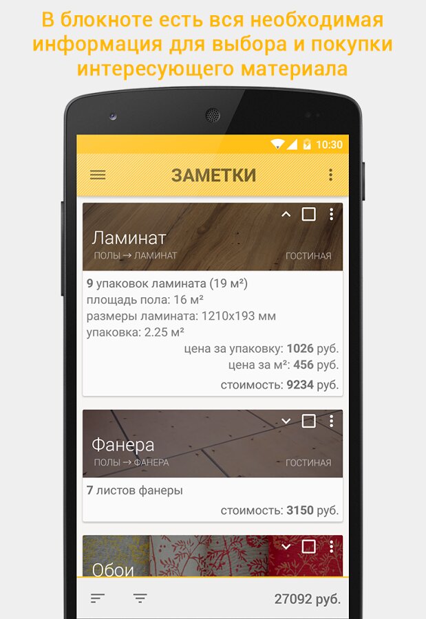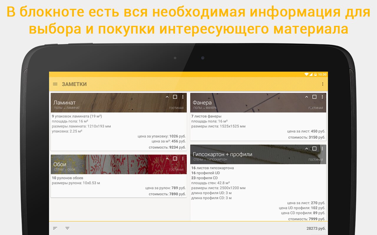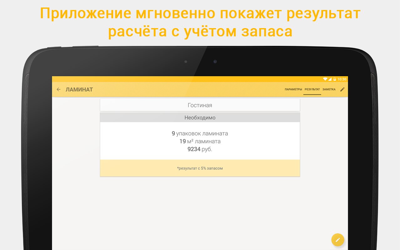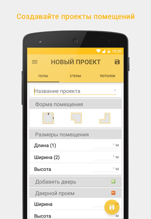 Приложение поможет рассчитать количество отделочных материалов, необходимых для ремонта помещений.
