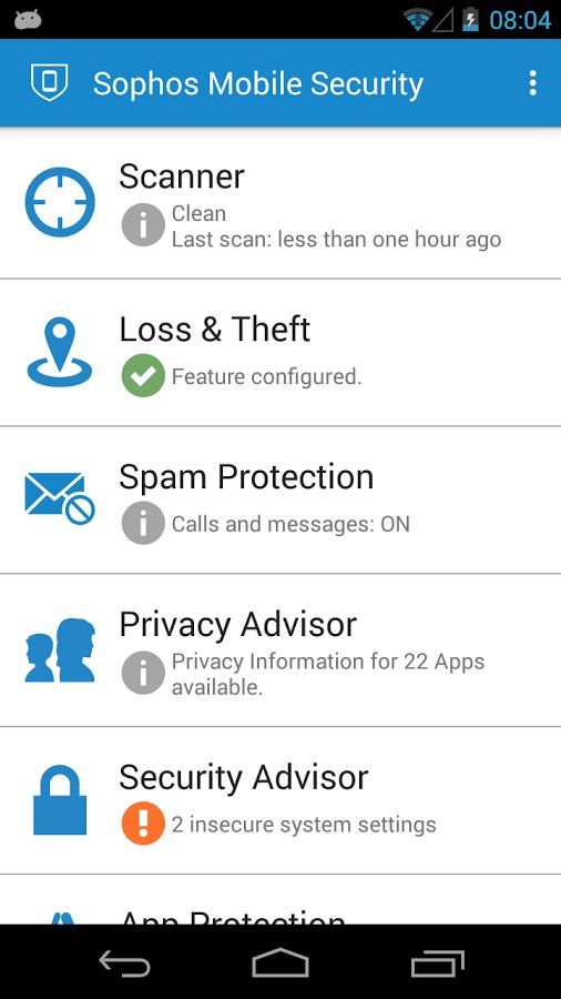 Sophos является лидером в области ИТ-безопасности для компаний и правительств по всему миру. Это приложение всесторонне защищает ваше устройство Android и вашу конфиденциальность, не влияя на производительность или срок службы батареи.