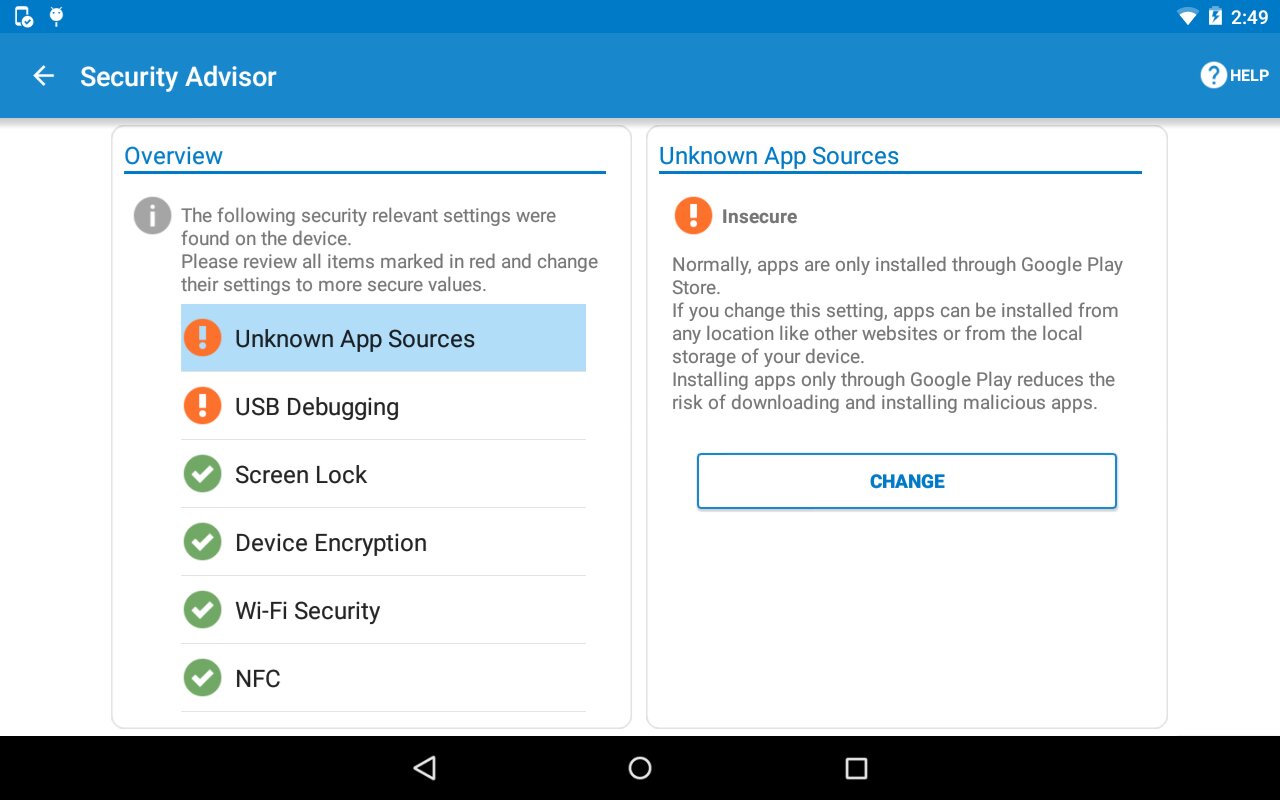 - Советник по безопасности. Получите совет о том, как улучшить безопасность устройства.