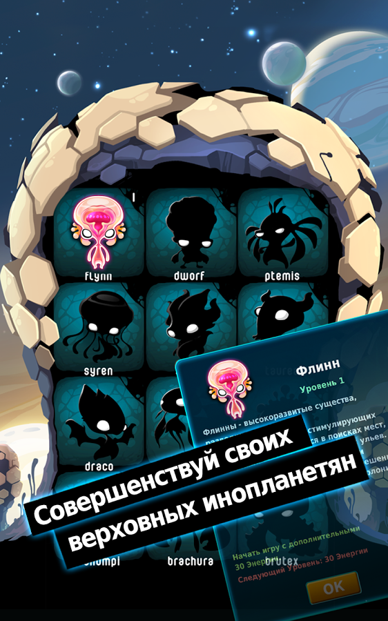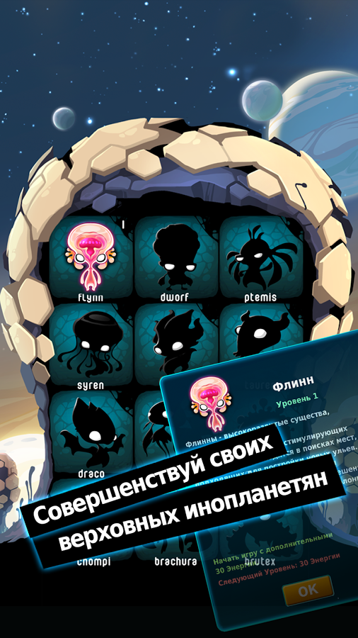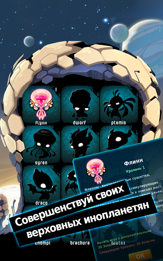 Alien Hive — это увлекательная бесплатная головоломка с отличной графикой и довольно оригинальной идеей. Наша задача будет состоять в том, чтобы комбинировать вместе одинаковые элементы, которые будут превращаться в более совершенную форму.