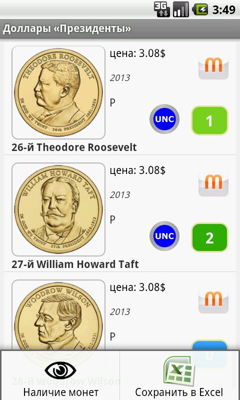 Монеты Евро и США – приложение для нумизматов, собирающих монеты США или Евро. Ведение учета своей коллекции, справочная информация. Приложение содержит полный перечень юбилейных монет Евро и США.