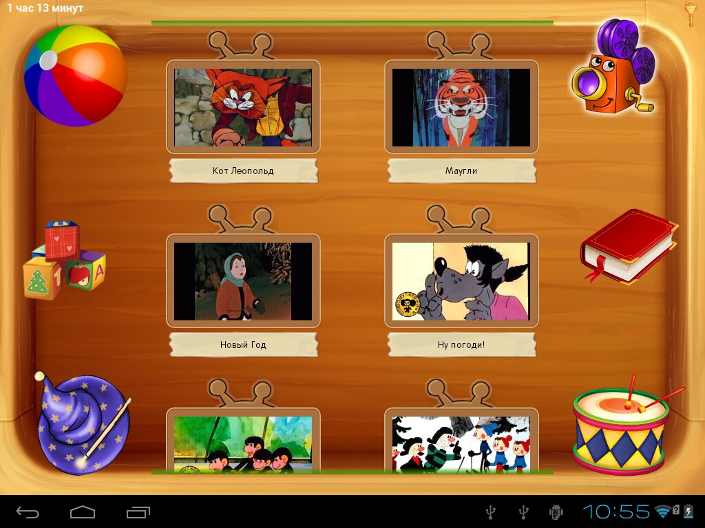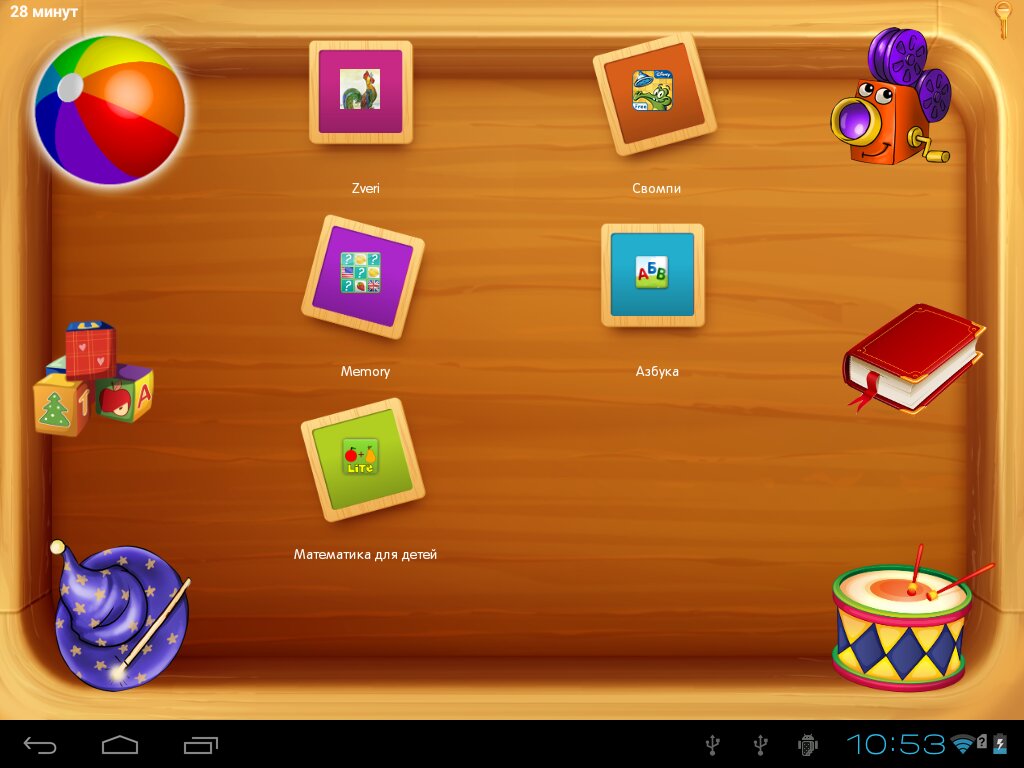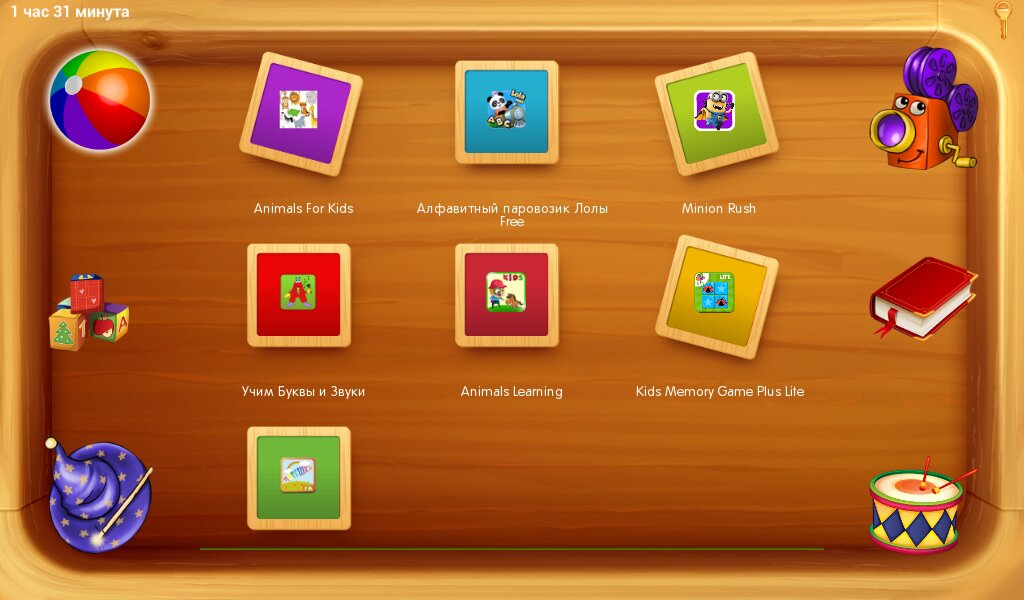 Выйти из детского режима можно только после ввода пароля, таким образом, ребенок не имеет доступа к настройкам, покупкам и взрослым приложениям, но он полностью самостоятелен в рамках, заранее установленных родителями. По мере роста детей приложение можно актуализировать, добавляя новые функции и изменяя содержимое рабочих столов.