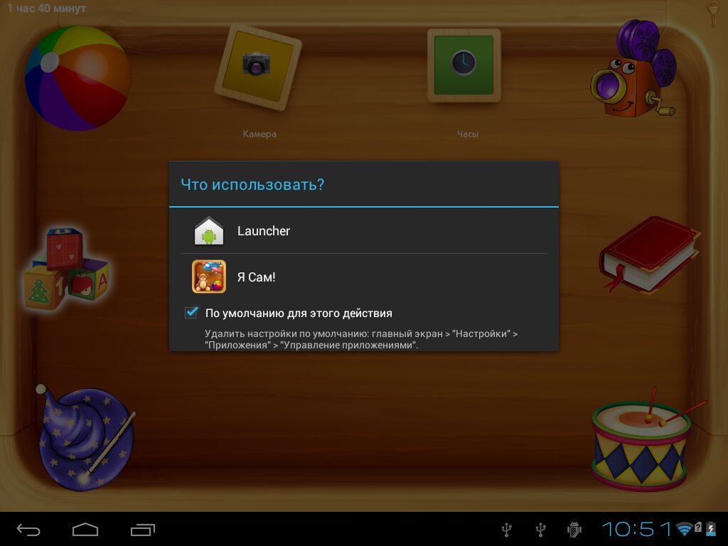 «Я Сам» — это детская оболочка, которая создает отдельное безопасное детское пространство с собственными рабочими столами. Взрослые самостоятельно определяют, какие именно программы и возможности доступны ребенку, настраивая детский режим наиболее удобным способом и добавляя в лаунчер необходимый контент.