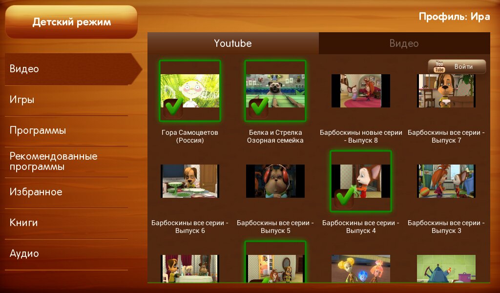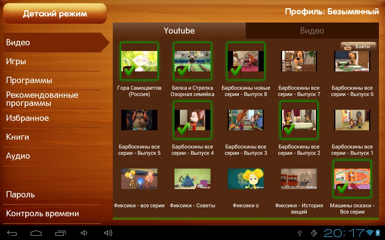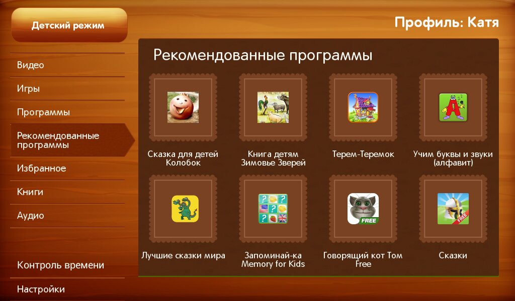 Только разрешенные родителями приложения, игры, книги, аудио и видео файлы.