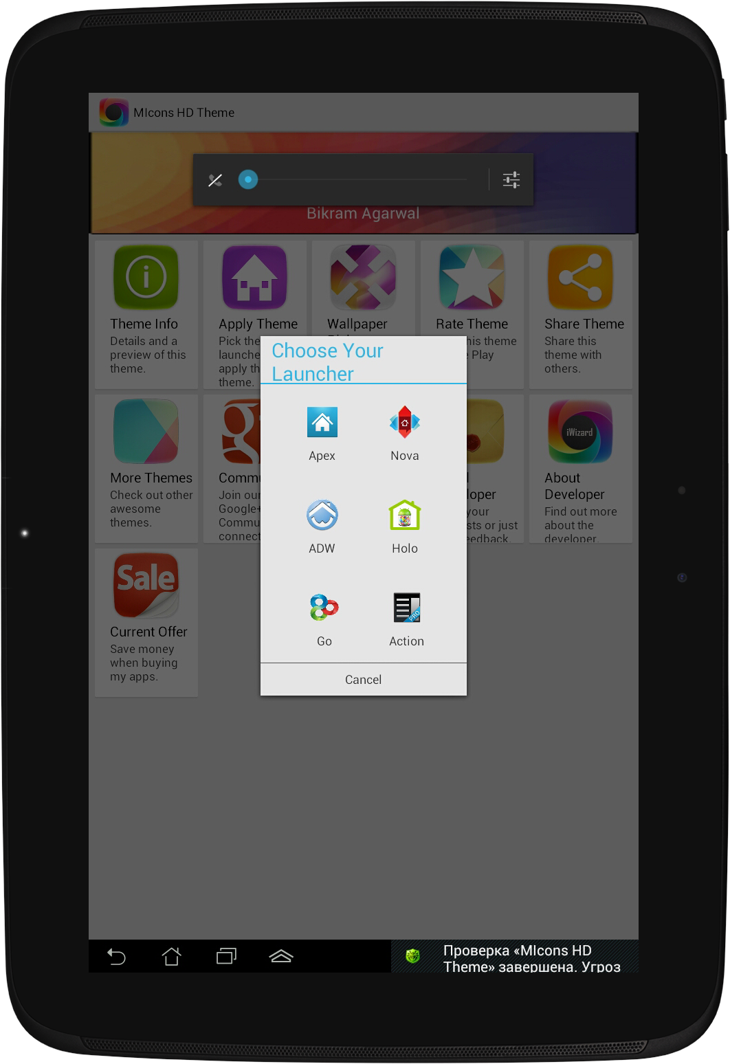 Потрясающая HD тема с более чем 3000 иконками в высоком разрешении. Поддерживает 6 лаунчеров ( список на скриншоте)