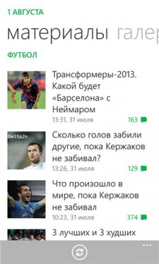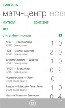 Большой тайл приложения на рабочем столе отображает главные спортивные новости последнего времени. На данный момент мобильный клиент имеет ряд технический огрехов и разных недочётов, но регулярно выходящие обновления обещают эту ситуацию исправить.