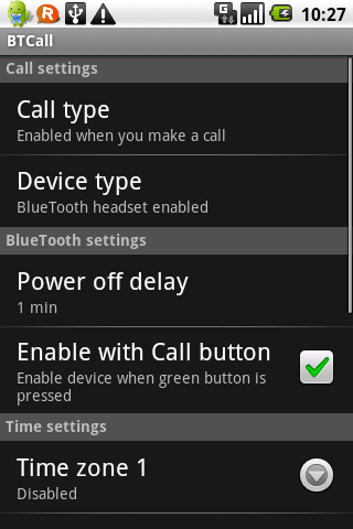 BTCall Demo — приложение для Android-смартфонов, которое автоматически включает встроенный модуль беспроводной связи Bluetooth при совершении исходящего звонка и/или при входящем звонке.