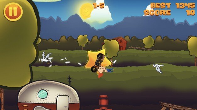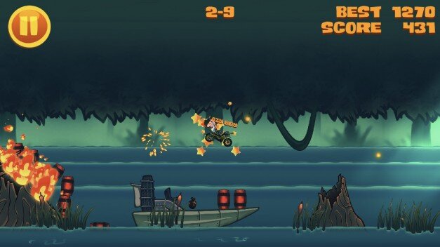 сумасшедшего деревенского гонщика и совершить различные трюки и прыжки сквозь массу опасных препятствий на мото на протяжении шестидесяти увлекательных уровней. Деревенский наш Билл хочет похожим быть на кумира своего Evel Knievel. Он собрал мотоцикл свой собственный и стал осваивать довольно опасный вид спорта. Помоги ему выполнить прыжки смертельные сквозь мусор, ржавые авто, самолет, животных цирковых, каньон и т.д. В магазине встроенном мы сможем приобретать мотоциклы новые и скины своего персонажа.