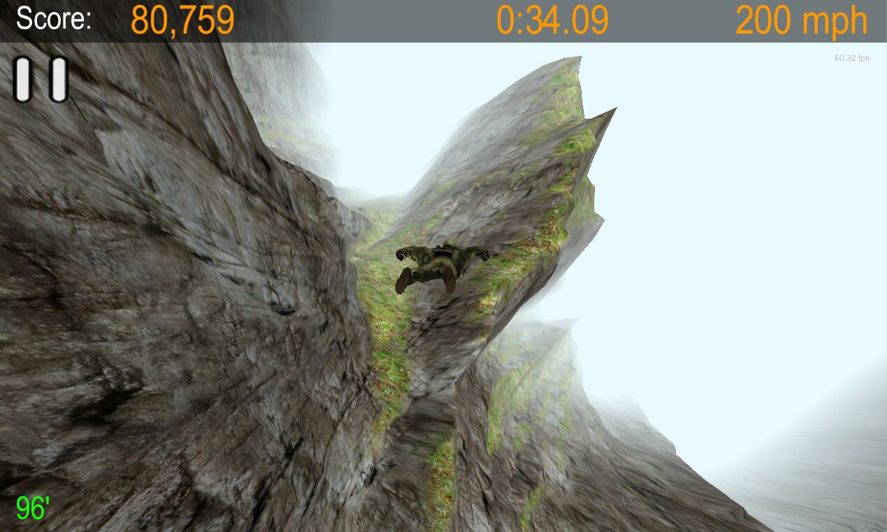 Wingsuit — Proximity Project — игра на андроид в которой вы можете получить кучу адреналина от прыжков в вингсьюте (костюм-крыло). Летаем с бешеной скоростью возле опасных отвесных скал. Чем ближе и быстрее вы приближаетесь к опасным участкам тем больше бонусных очков вы зарабатываете. В конце уровня на заработанные очки вы можете открывать новые участки для своих полётов.