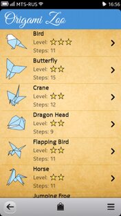 В приложении «Оригами Zoo» вы cможете найти самые популярные фигуры животных, которые можно сделать, используя только один лист бумаги.