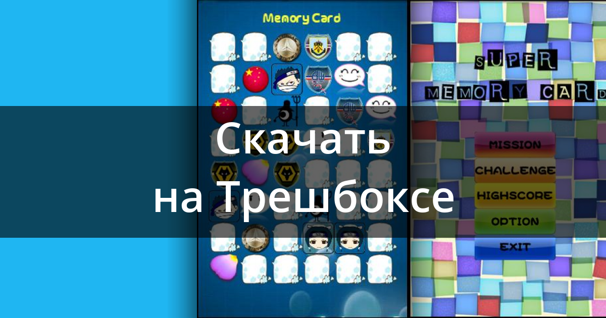 Super Memory Card — игра для Android, развивающая память и внимание. Нужно находить одинаковые пары игровых карточек, переворачивая их одну за другой. Типов карточек довольно много: герои игр и мультфильмов, флаги стран, гербы футбольных клубов, животные, эмблемы автомобилей и другие. Чем больше карточек на игровом поле, тем сложнее игра, но тем она и интереснее.