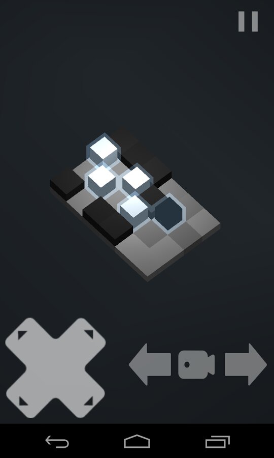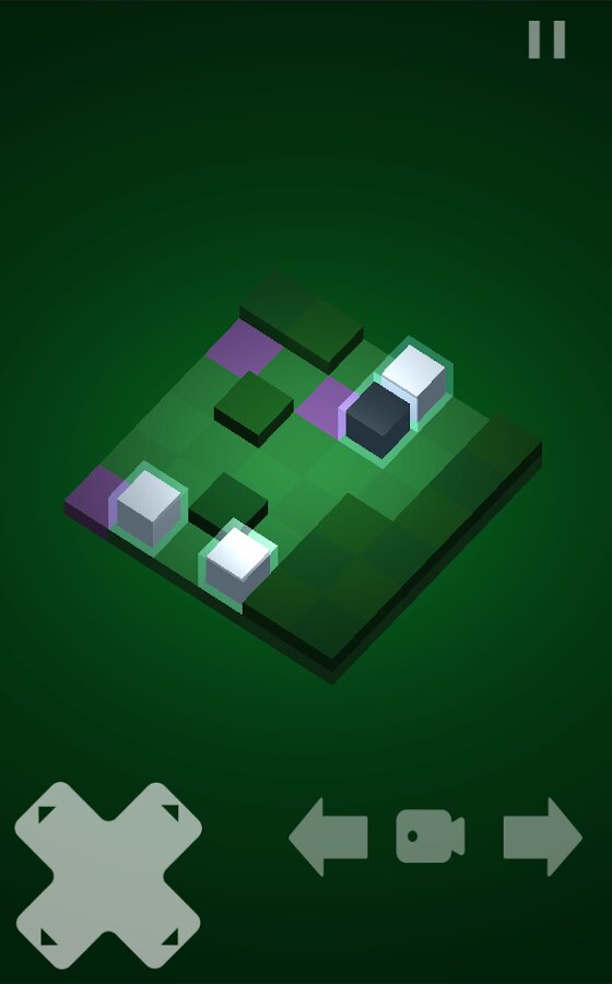 Головоломка с кубиками.У Вас от одного до нескольких кубиков двух цветов. Белые необходимо переместить на определенные ячейки, что бы пройти уровень. Черные могут помочь направить белые кубики правильно. Основная сложность заключается в том, что кубики двигаются одновременно.