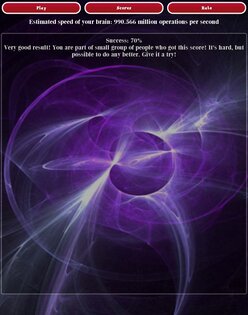 Вы считаете свой мозг быстрее старого процессора? Скачайте Speed Test – бесплатный тест, который определит так ли это. Данное приложение поможет испытать скорость мозга. Это развлекательное приложение, которое Ваше мобильное устройство под управлением Android превратит в тестер по определению скорости мозга. Данная программа покажет достоверную скорость мозга. От Вас не требуется навыков в математике или высокого IQ для данного теста. Просто попробуйте этот своеобразный анализатор, чтобы определить возраст Вашего мозга – сравним ли он со старым процессором с тактовой частотой в 1 ГГц, а если так, то в нем работает в секунду 1 миллиард операций.
