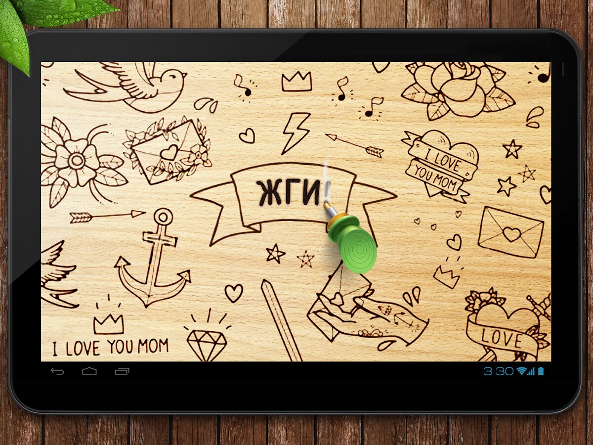 Pyrography — симулятор выжигания на дощечках на андроид. У многих в детстве был выжигательный аппарат, а некоторые даже помнят этот запах, который разносился по всей квартире когда вы выжигали что либо. Теперь вам не нужен электроприбор и доска, всё это вы сможете сделать на своём планшете или телефоне.