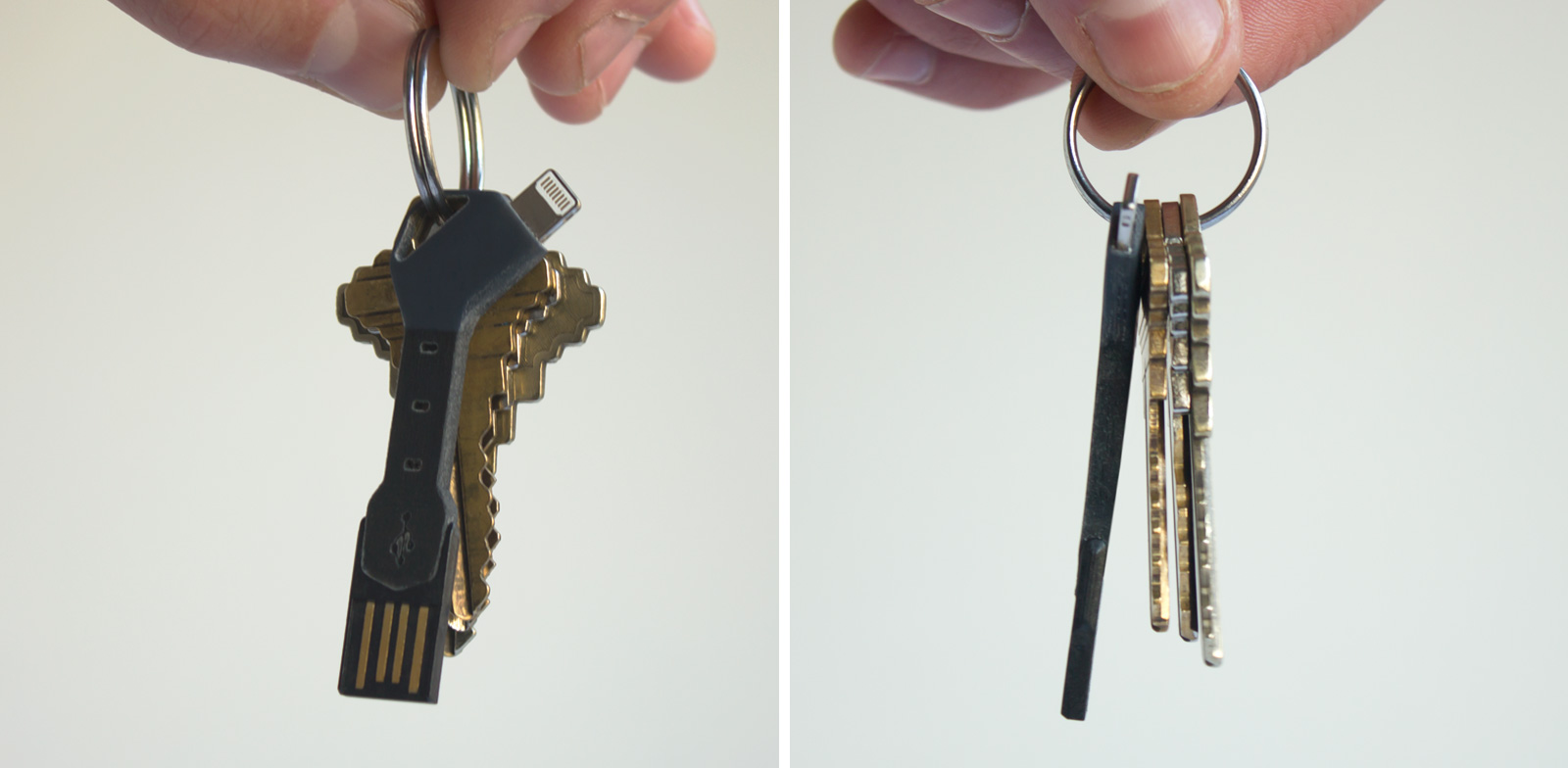 Еще раз напомню, что данное устройство подойдет не всем, но иметь такой гаджет в кармане или на ключах, весьма удобно и практично. Выехал в дорогу, захватил внешний аккумулятор, подключил к iPhone, сложил пополам благодаря гибкости Charge Key и никаких лишних проводов. Помимо Lightning, у ребят есть версия с micro-USB, что для владельцев Android будет весьма выгодным решением.