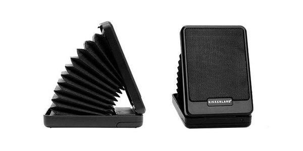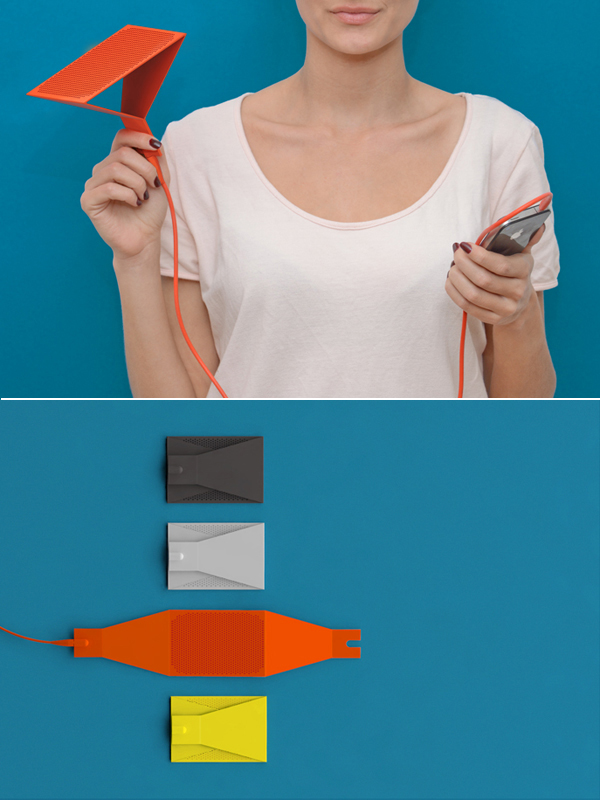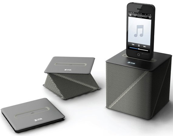 Эти необычные колонки кубической формы могут превратится за один миг в плоский гаджет. В концепт колонок входит основа оригами. К смартфону колонки подключаются как док-станция. Плюс ко всему имеется Bluetooth-модуль, предоставляющий нам возможность подключать и другие смарты.