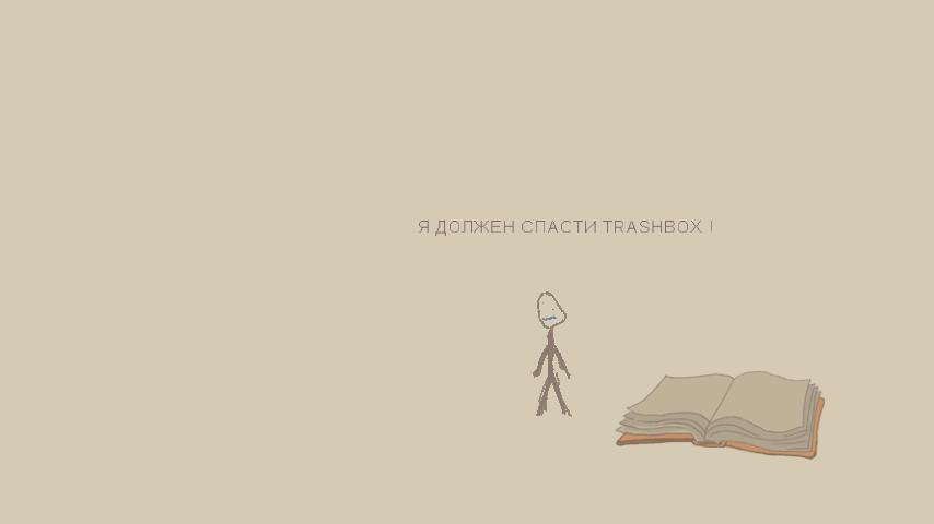 После того, как мы подойдем к книге, наш герой скажет: «Я должен спасти трешбкс!» и прыгает в книгу.