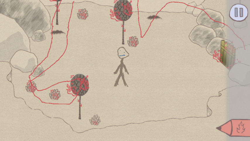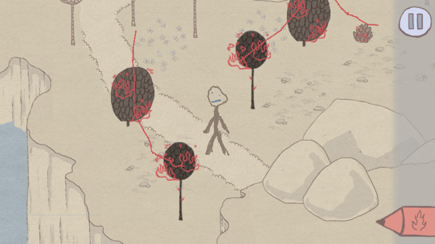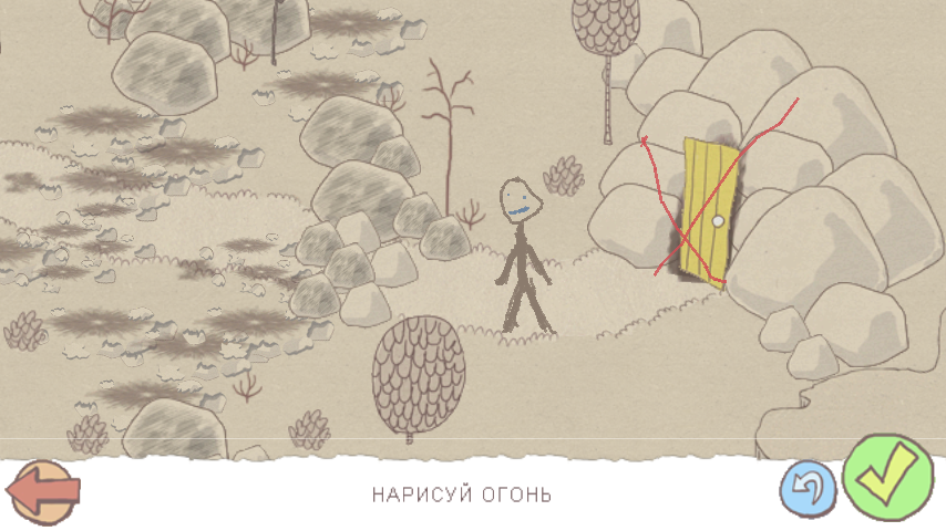 Нажимаем кнопку «плей» и начинает грузится первый уровень, где нас учат пользоваться огненным карандашом.
