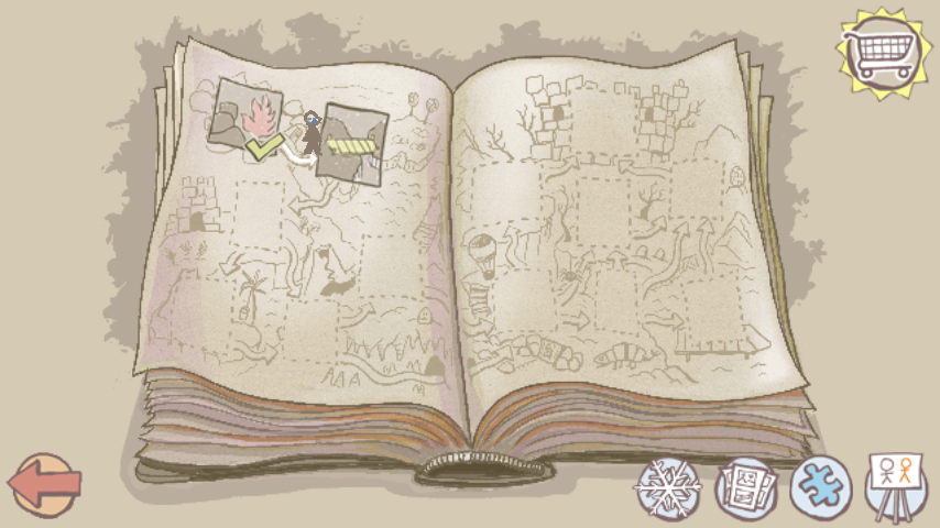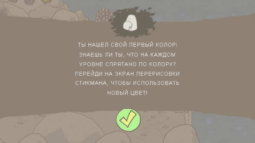 После прохождения первого уровня нас выбросит на карту, где можно выбрать уровень, перерисовать человечка, или вернуться в главное меню.