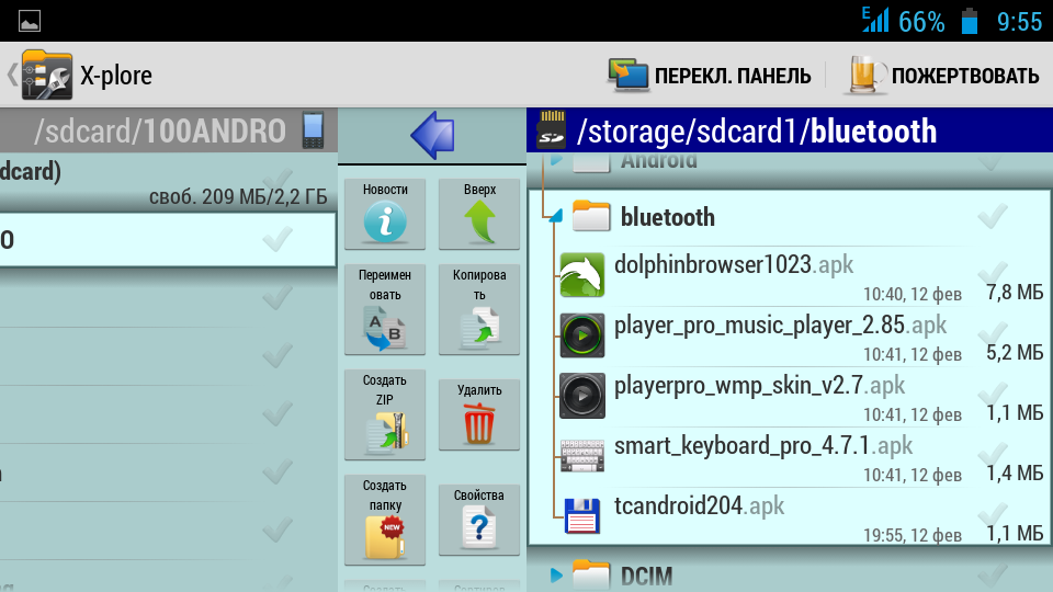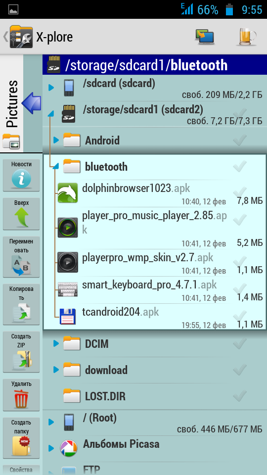 Есть и такая удобная штучка, как «Диспетчер программ», которая покажет все установленные Вами программы, игры и прочие приложения. Опять же таки, можно зажать палец на приложении и Вам предоставится список всевозможных действий. Можно непосредственно из Х-plore удалять всё ненужное.